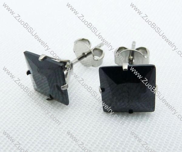 3mm Square Jet Zircon Stainless Steel Earring JE220016